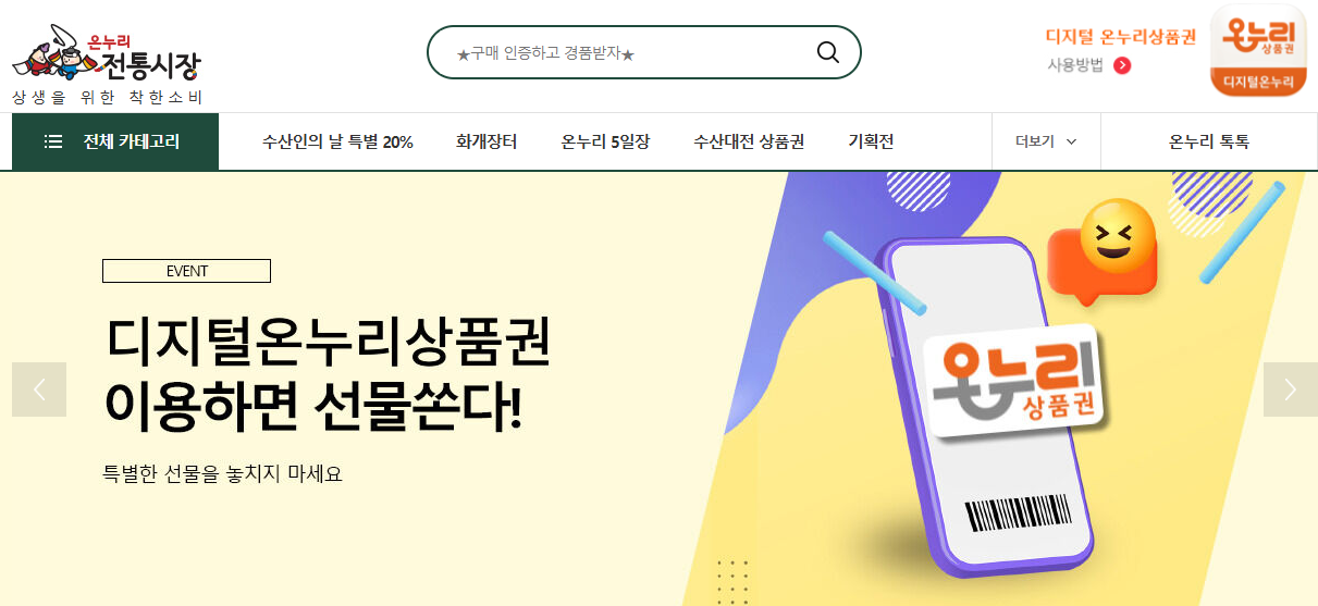 해당 온라인몰은 온누리상품권 전용 결제 시스템을 갖추고 있어서, 디지털 온누리상품권으로 결제 시에도 동일한 혜택을 누릴 수 있습니다.
