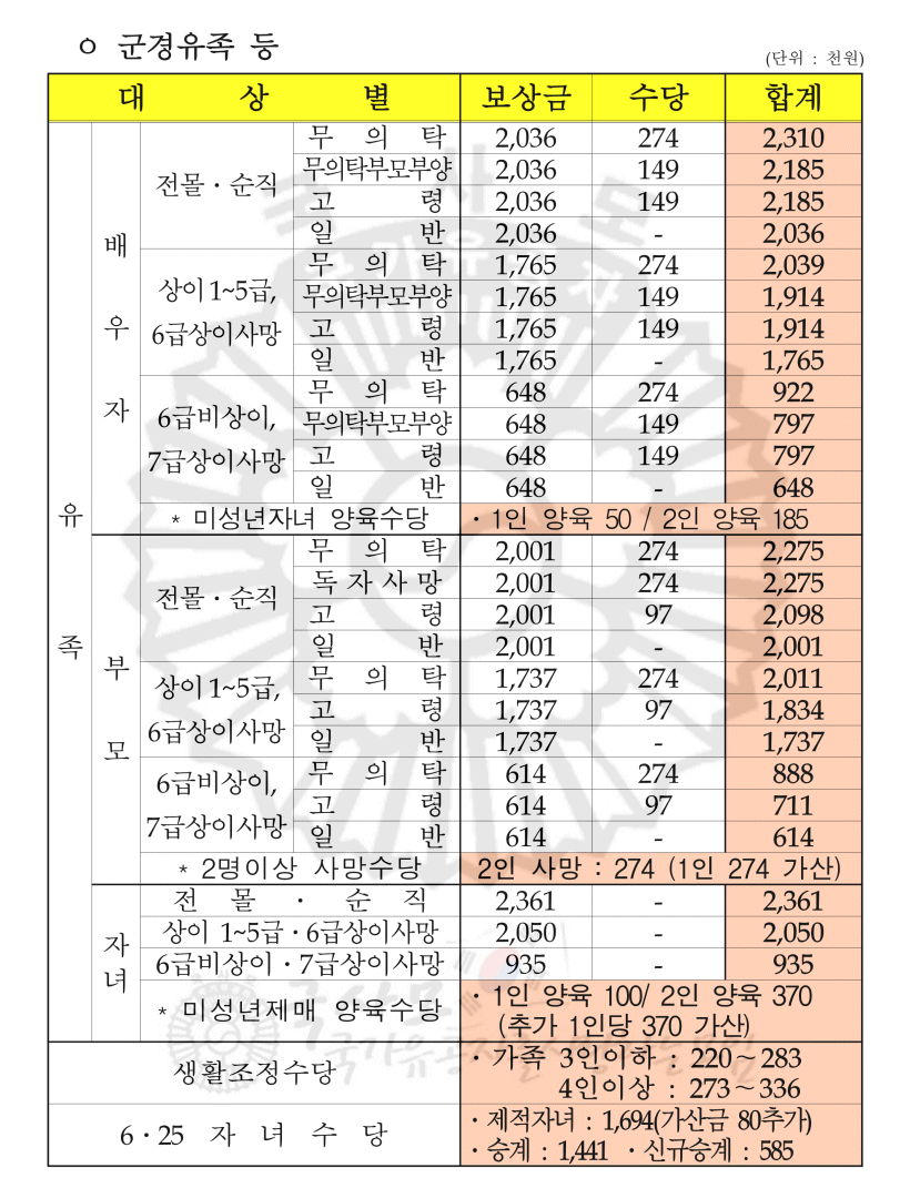 3) 6.25 전몰군경 유자녀 수당