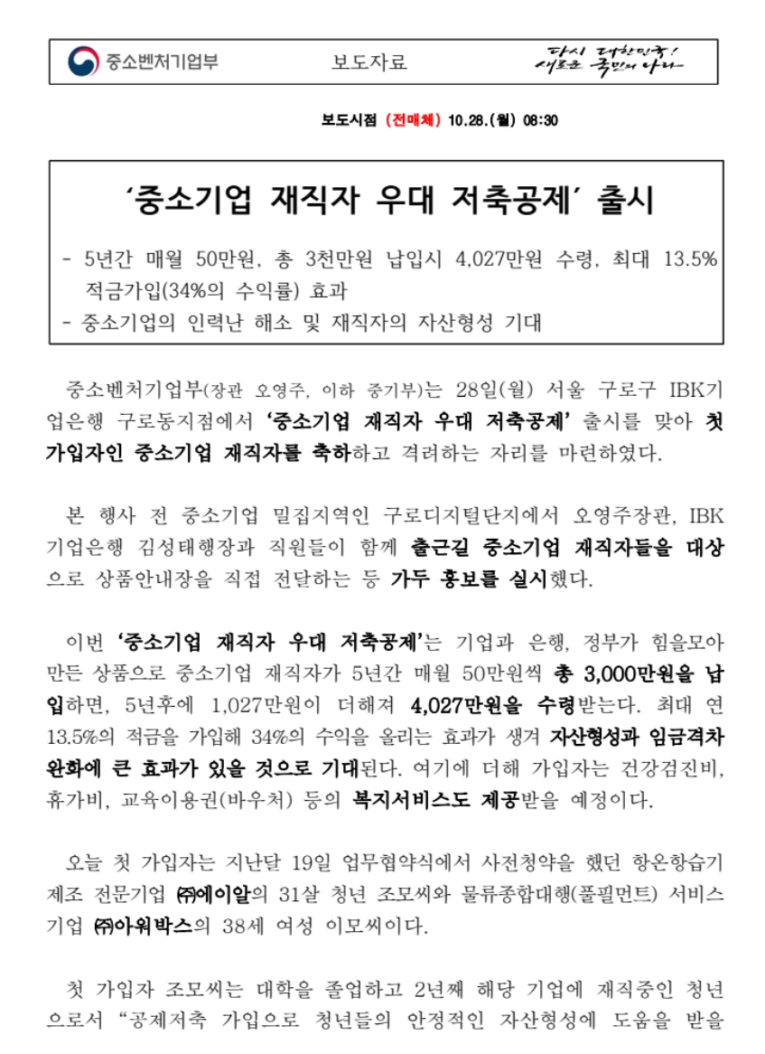 특히, 중소기업 재직자 우대 저축공제는 근로자뿐만 아니라 기업 입장에서도 유익한 제도이므로, 기업 역시 직원들에게 제도의 변동 사항을 적극적으로 안내할 필요가 있습니다.