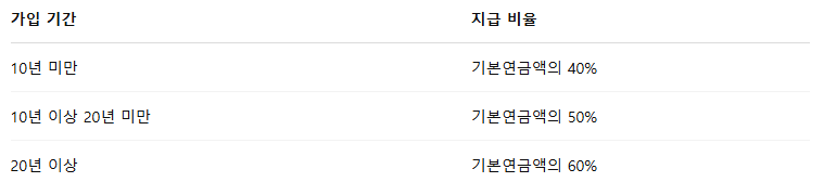 1) 가입 기간에 따른 지급 비율