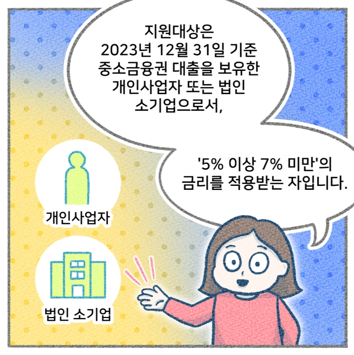 1) 대상 확대: 기존 소상공인뿐만 아니라, 영세 자영업자와 일부 중소기업도 포함될 수 있도록 대상 범위를 확대하였습니다.