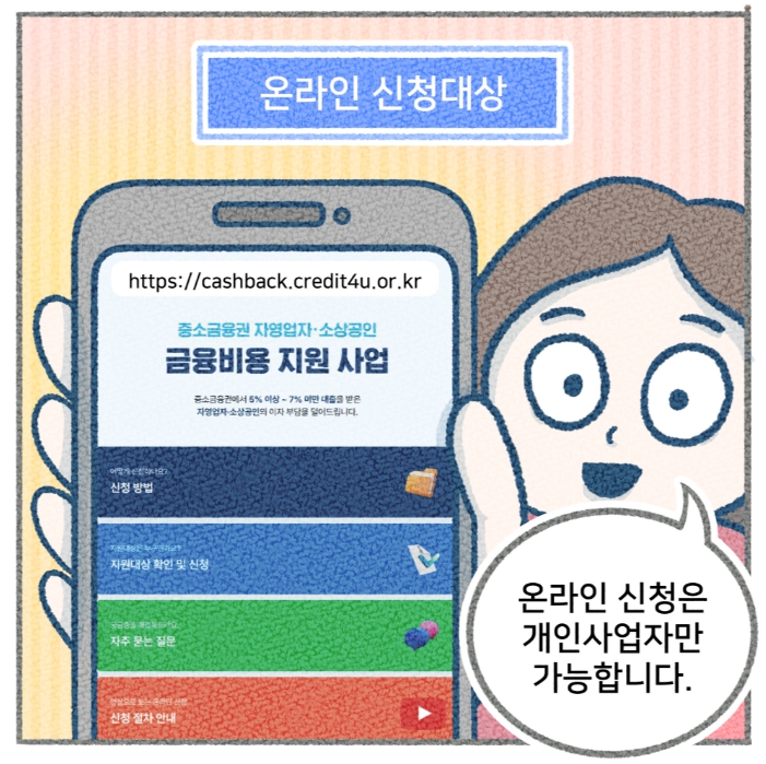 4) 사례 기반 지원: 실제 사업 운영 중 이자 부담이 크게 늘어난 경우를 우선 지원 대상으로 선정하여, 가장 도움이 필요한 소상공인에게 혜택이 돌아갈 수 있도록 구성하였습니다.