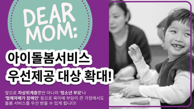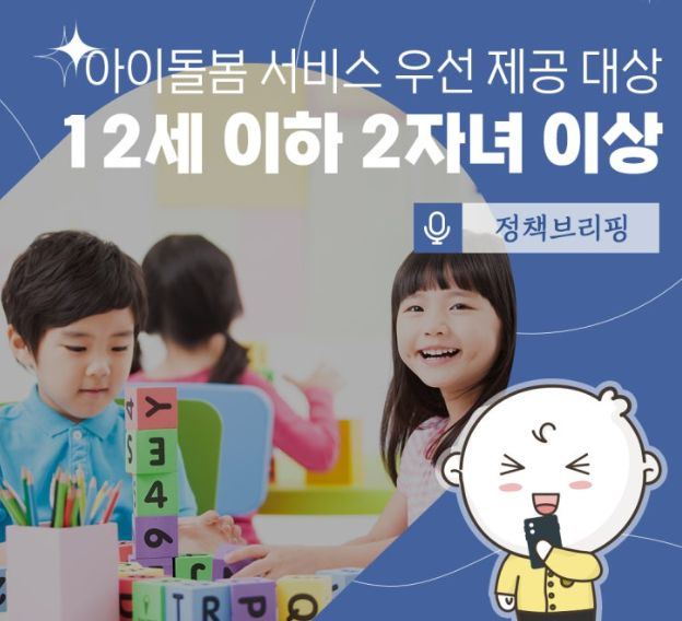 아이돌봄서비스를 통해 육아 스트레스와 부담을 줄이고, 아이와 부모 모두가 안전하고 행복한 생활을 누릴 수 있도록 많은 분들이 유용하게 활용하시기 바랍니다.